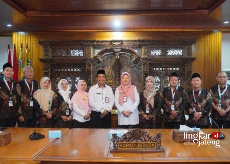 FOTO BERSAMA: Staf Ahli Bupati Bidang Pembangunan, Kemasyarakatan Dan Sumber Daya Manusia Kabupaten Jepara, Rini Patmini, usai audiensi dengan Dewan Pendidikan Jepara (DPJ) di Ruang Command Center Kantor Setda Jepara. (Tomi Budianto/Lingkarjateng.id)
