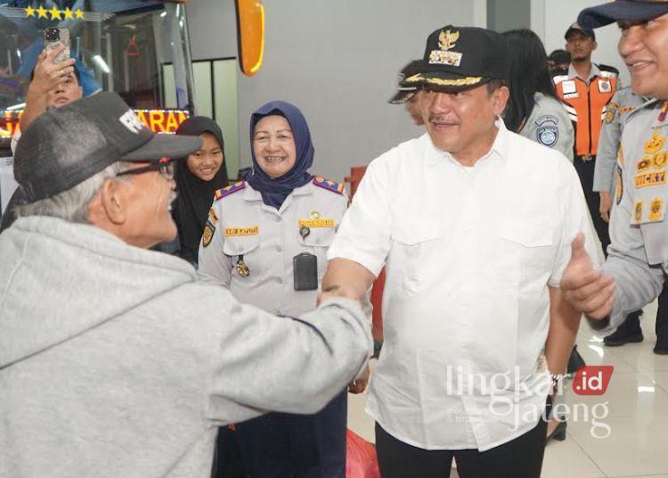 SALATIGA, Lingkarjateng.id – Sebanyak 148 pemudik yang memanfaatkan program mudik gratis tiba di Terminal Tipe A Tingkir, Salatiga, Rabu 26 Maret 2025 petang. Kedatangan warga Salatiga yang merantau di Jakarta itu disambut Wali Kota Salatiga Robby Hernawan, Kepala Dinas Perhubungan, Sri Satuti, dan Kepala Terminal Tipe A Tingkir, Vicky Chandra Yanuar.