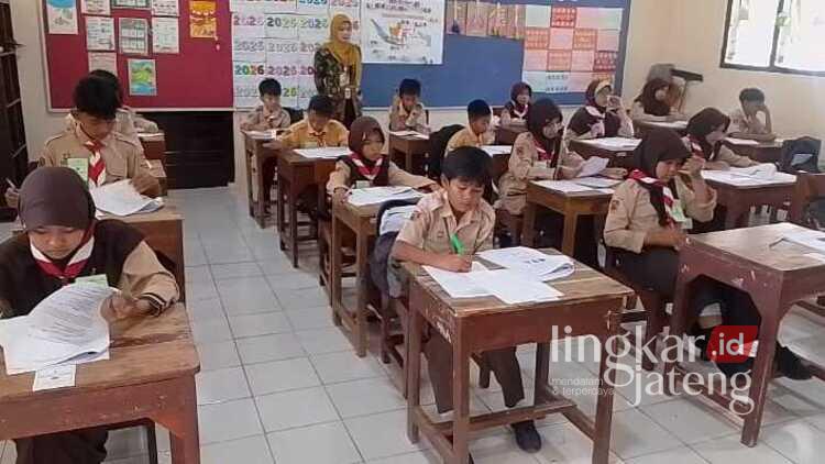 Sejumlah siswa SD di Kecamatan Bojong tampak serius dan fokus saat mengikuti Lomba Mapel dan Cerdas Cermat di SDN 01 Kalipancur, Sabtu (4/4/2026). Foto : Fahmi/Lingkar