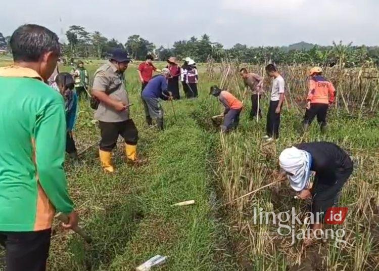 Untuk membasmi hama tersebut, petani dibantu jajaran Polres Salatiga melakukan gropyokan tikus di areal persawahan, Kamis, 12 Februari 2026.
