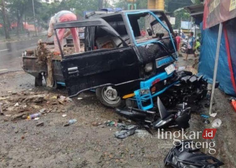 SALATIGA, Lingkarjateng.id – Kecelakaan lalu lintas beruntun terjadi di Jalan Lingkar Selatan (JLS), tepatnya di simpang empat Gamol, Kelurahan Kecandran, Kecamatan Sidomukti, Kota Salatiga, Rabu, 24 Desember 2025. Kecelakaan tersebut melibatkan empat kendaraan, yakni truk tronton Mitsubishi, mobil pikap Mitsubishi colt L300, sepeda motor Honda Beat dan Honda Vario.