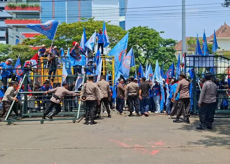 SEMARANG, Lingkarjateng.id – Ratusan pekerja yang tergabung dalam Dewan Pimpinan Daerah (DPD) Serikat Pekerja Seluruh Indonesia (SPSI) menggelar aksi unjuk rasa di depan Kantor Gubernur Jawa Tengah, Rabu, 24 September 2025.