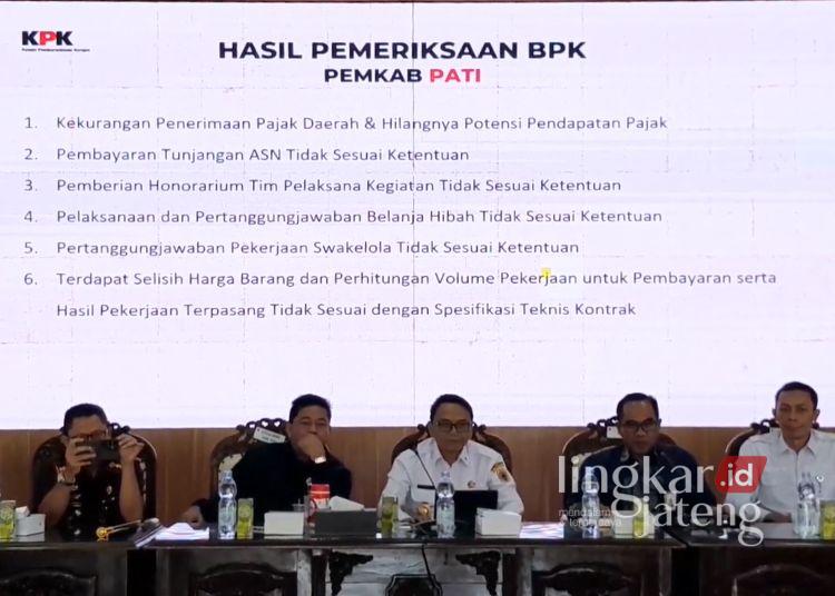 PATI, Lingkarjateng.id – Komisi Pemberantasan Korupsi (KPK) memberikan asistensi terhadap Pemerintah Kabupaten Pati pada Rabu, 15 April 2026. Pada pertemuan ini ada enam poin hasil pemeriksaan Badan Pemeriksa Keuangan (BPK) yang menjadi sorotan.