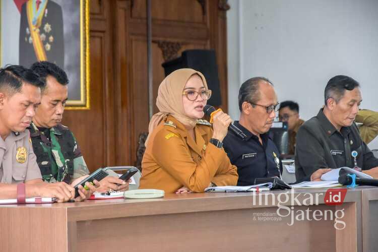 Ketua Satgas MBG Kota Salatiga Nina Agustin saat melakukan evaluasi MBG di Kantor Setda, Senin, 2 Maret 2026. Foto : Dok.Prokompim Setda Kota Salatiga/Lingkar