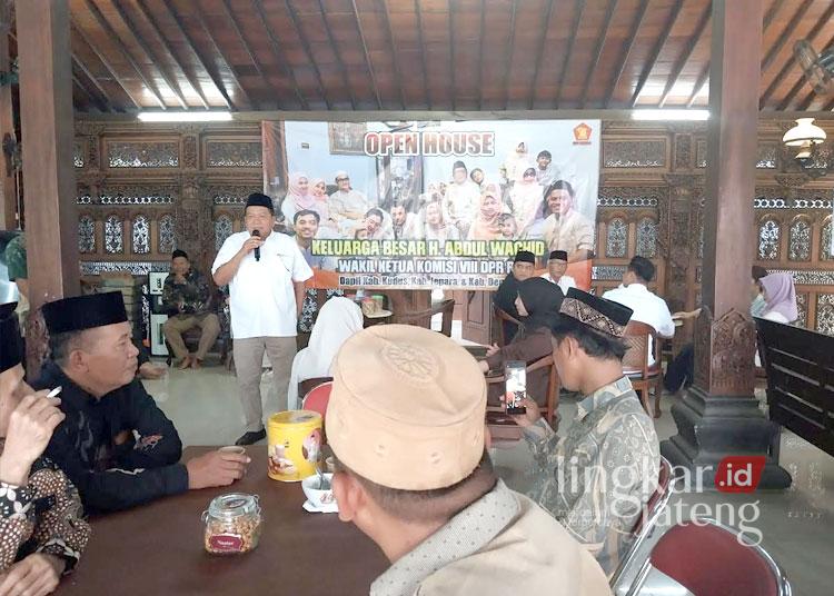 JEPARA, LINGKAR – Dalam rangka merayakan Idul Fitri 1446 H, Wakil Ketua Komisi VIII DPR RI, Abdul Wachid menggelar acara Halal bi Halal di Joglo Aspirasi, Desa Margoyoso, Kecamatan Kalinyamatan, Kabupaten Jepara pada Jumat (4/4). Acara ini dihadiri oleh ratusan warga dari berbagai elemen masyarakat, termasuk tukang ojek online, pedagang, guru, kepala desa, serta tokoh agama dan masyarakat.