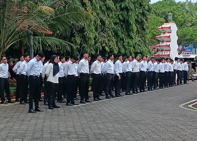 Calon ASN Pemkab Jepara saat mengikuti apel. (Tomi Budianto/Lingkarjateng.id)