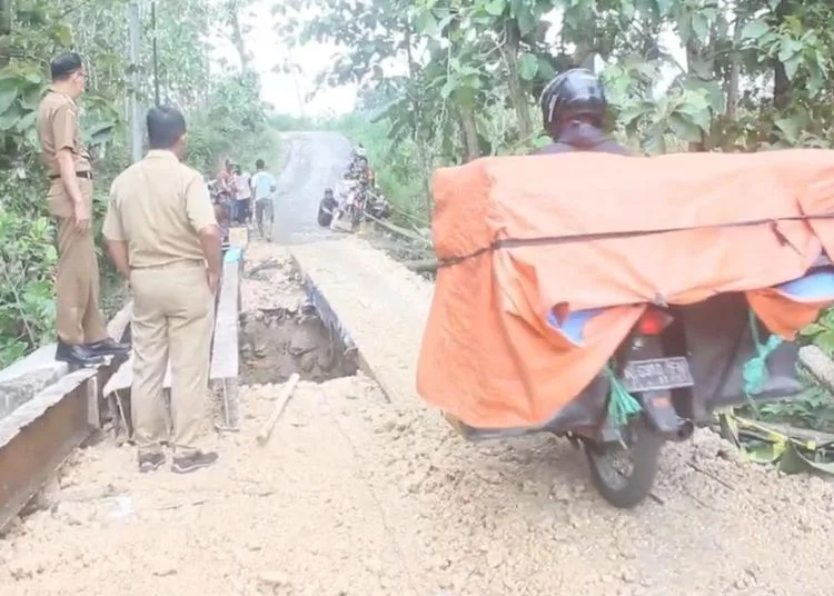 “Sementara yang boleh lewat cuman motor saja. Itu pun harus bergantian. Saat ini kami juga sedang berkoordinasi dengan dinas terkait untuk menangani jembatan itu,” tambahnya.