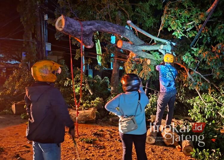 Petugas saat membersihkan pohon tumbang akibat angin kencang, Rabu (4/3). Foto : Dok Pemkot Semarang for Lingkar Jateng