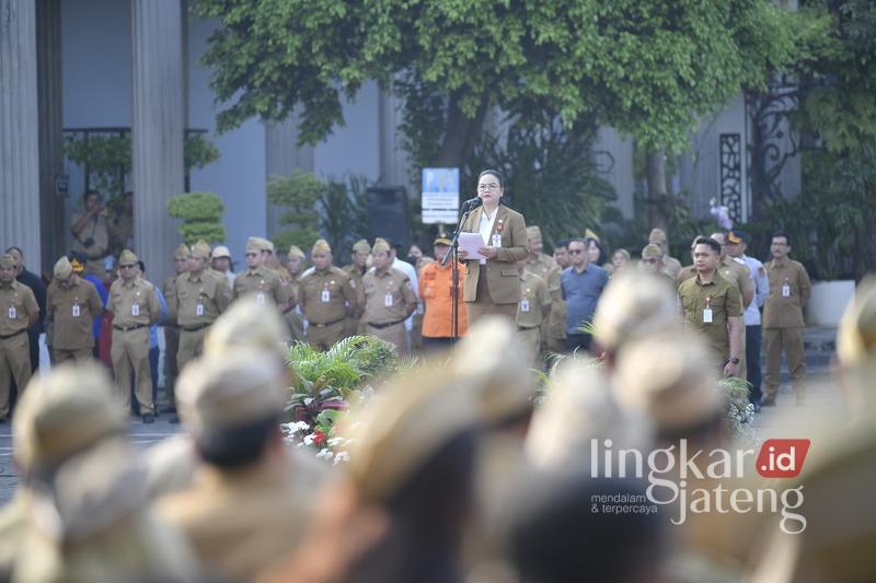 Semarang (lingkarjateng.id) – Pemerintah Kota Semarang menggelar apel pagi terpusat yang dirangkai dengan acara halal bihalal Idulfitri 1447 H di Halaman Balai Kota, Senin (30/3).