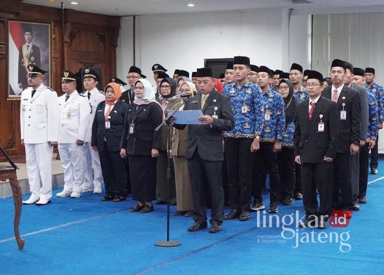 Pelantikan yang termuat dalam Keputusan Wali Kota Salatiga Nomor 800.1.3.3/1397 tersebut terdiri dari 50 pejabat administrator dan pengawas serta 5 pejabat fungsional. Kegiatan dihadiri jajaran Forkopimda, Ketua TP PKK, Pj. Sekda, asisten, kepala perangkat daerah, camat, dan lurah se-Kota Salatiga.