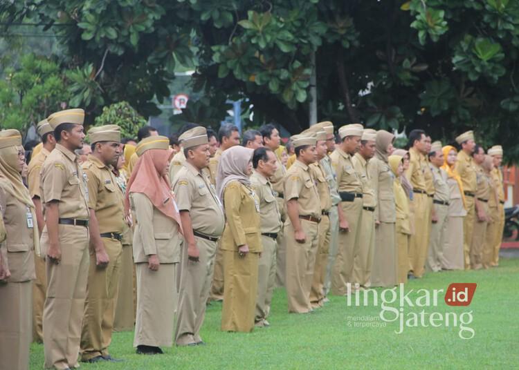 ASN Pemkab Rembang mengikuti apel. (Vicky Rio/Lingkarjateng.id)