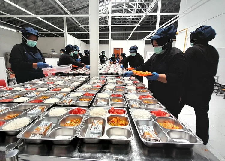 Petugas SPPG di Kabupaten Blora menyiapkan paket MBG. (Eko Wicaksono/Lingkarjateng.id)
