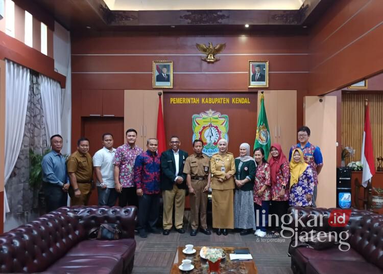 Bupati Kendal, Dyah Kartika Permanasari, berfoto bersama anggota Ikatan Apoteker Indonesia (IAI) setempat usai melakukan audiensi di ruang kerjanya pada Senin, 19 Mei 2025. (Arvian Maulana/Lingkarjateng.id)