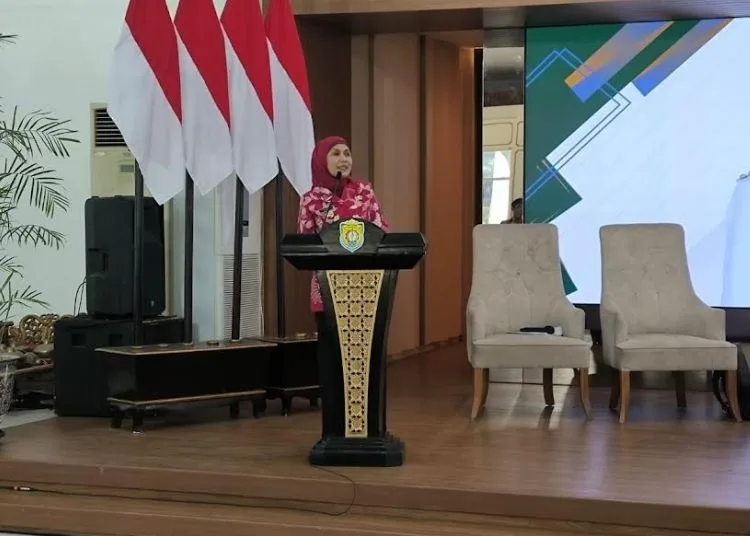 Bupati Kendal, Dyah Kartika Permanasari saat memberikan sambutannya dalam kegiatan Pendidikan Tani Hutan yang digelar di Pendopo Tumenggung Bahurekso Setda Kendal, Selasa, 5 Agustus 2025. (Arvian Maulana/Lingkarjateng.id)