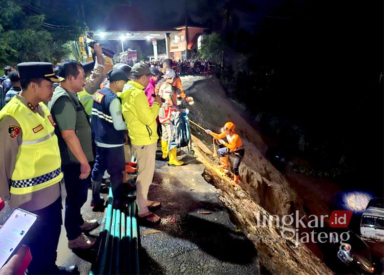 Didampingi jajaran Polres Kudus, Bupati Sam’ani melihat langsung kondisi jembatan yang terdampak longsoran tanah dan material batuan, yang sempat menyeret dua kendaraan ke dalam jurang, masing-masing satu unit mobil dan satu unit truk.