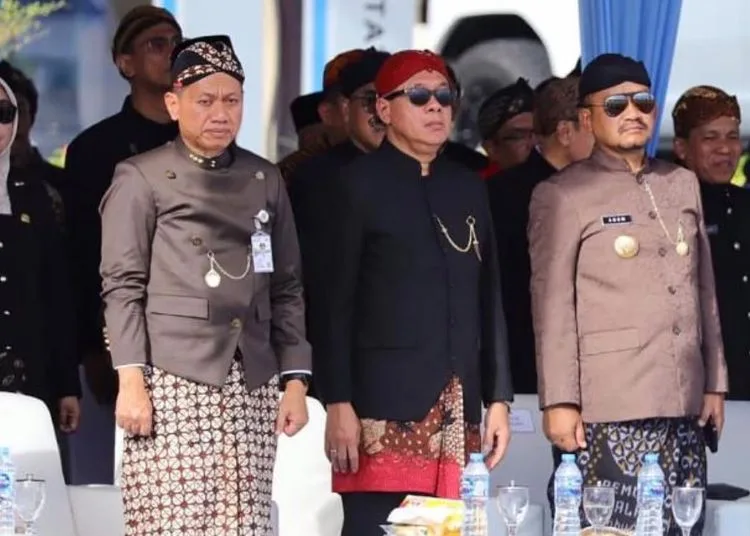 Bupati Kudus Samani Intakoris (kiri) saat upacara Hari Jadi ke-80 Jawa Tengah di Batang, Selasa, 19 Agustus 2025. (Humas Pemkab Kudus/Lingkarjateng.id)