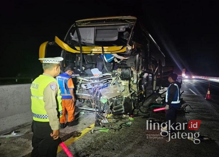 BATANG, Lingkarjateng.id – Kecelakaan lalu lintas melibatkan sebuah bus pariwisata dan truk terjadi di ruas Tol Batang KM 364 jalur B (arah timur menuju barat), Kabupaten Batang, Jawa Tengah, Rabu, 24 Desember 2025. Peristiwa tersebut mengakibatkan satu orang meninggal dunia dan empat lainnya mengalami luka-luka.