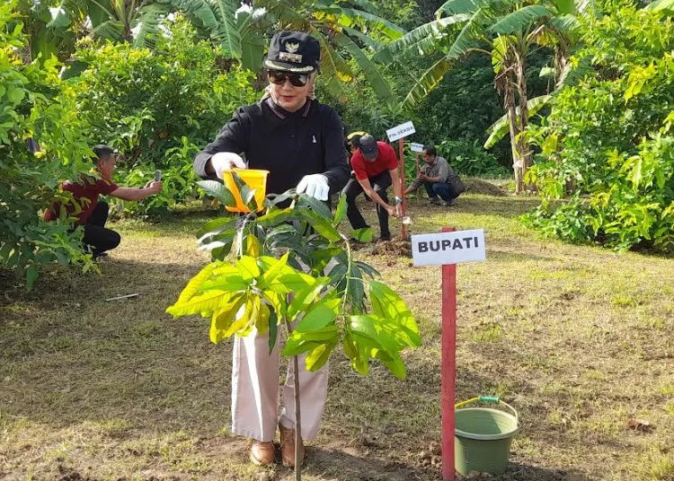 “Ibu Tika tadi memberikan pohon mangga jumlahnya sekitar 30 pohon. Tadi ditanam secara simbolis oleh Ibu Bupati kami berterima kasih atas bantuan ini,” katanya.