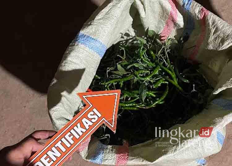 “Pelaku meninggalkan sejumlah barang bukti di lokasi kejadian, yakni satu karung berisi 16 kilogram cabai, pakaian berupa kaos dan hoodie, serta satu unit sepeda motor Suzuki Satria F warna putih bernomor polisi K-6527-OH,” ujarnya.