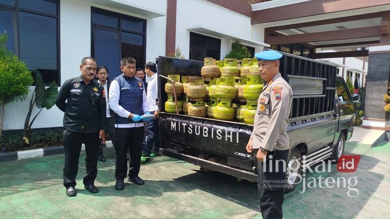 Polisi perlihatkan barang bukti mobil pikap bermuatan LPG subsidi. Foto : Eko Wicaksono/Lingkar