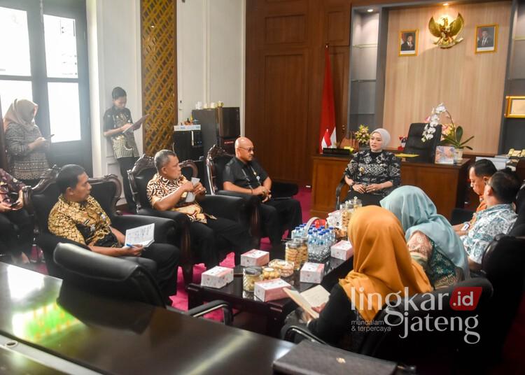 Wakil Wali Kota Salatiga, Nina Agustina, saat memimpin rapat koordinasi kewilayahan bersama jajaran kepala dinas dan camat se-Kota Salatiga di ruang kerjanya, Kamis, 2 April 2026. (Prokompim Setda Salatiga/Lingkarjateng.id)