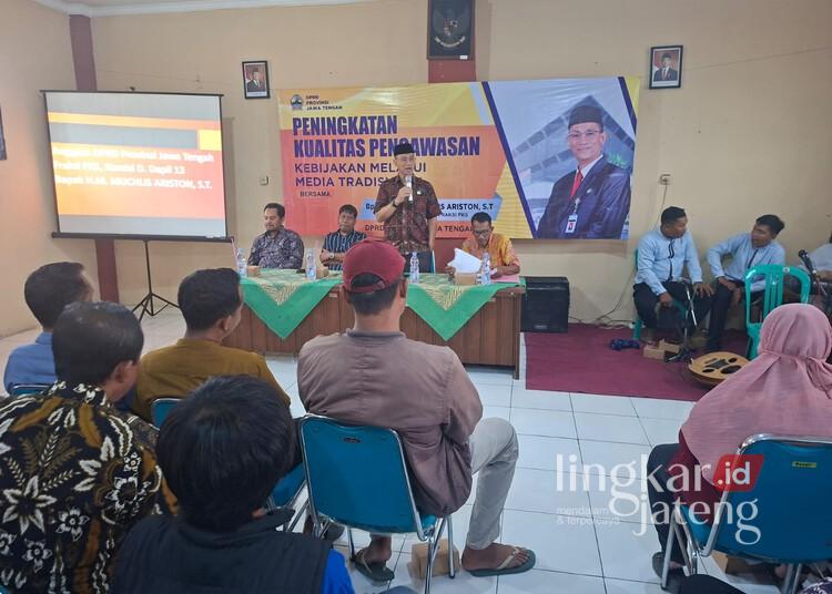 Komitmen tersebut disampaikan Ariston dalam kegiatan Peningkatan Kualitas Pengawasan Kebijakan melalui Media Tradisional yang digelar di Kelurahan Noyontaansari, Kecamatan Pekalongan Timur, Kota Pekalongan, Jumat, 21 November 2025.
