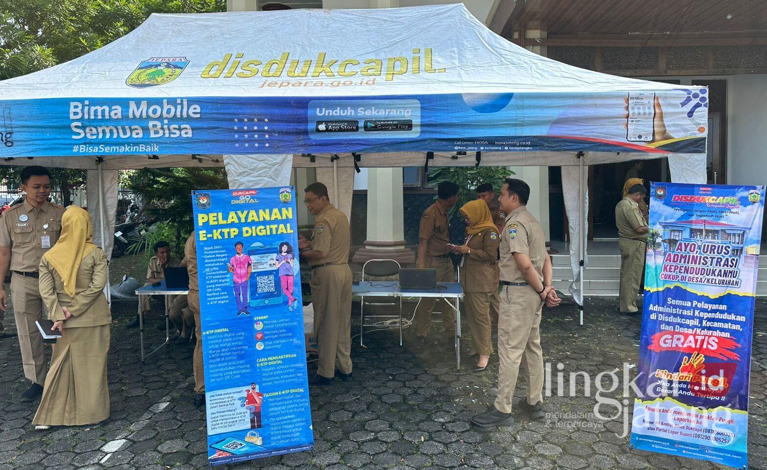 Disdukcapil Jepara buka layanan jemput bola berupa aktivasi Identitas Kependudukan Digital (IKD) sekaligus pembaruan data warga, di Halaman Setda Jepara, pada Senin (20/4/2026). Foto : Tomi Budianto/Lingkar