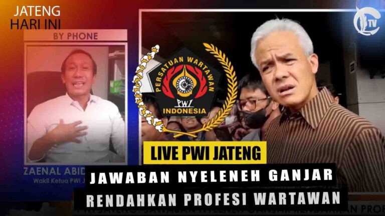 SEMARANG, LINGKAR – Pernyataan nyeleneh dari Gubernur Jawa Tengah Ganjar Pranowo yang keluar saat wartawan Lingkar TV menanyakan tindak lanjut penanganan macet di Jalan Juwana-Batangan, Kabupaten Pati, kemarin sangat disayangkan oleh Persatuan Wartawan Indonesia (PWI) Jawa Tengah.