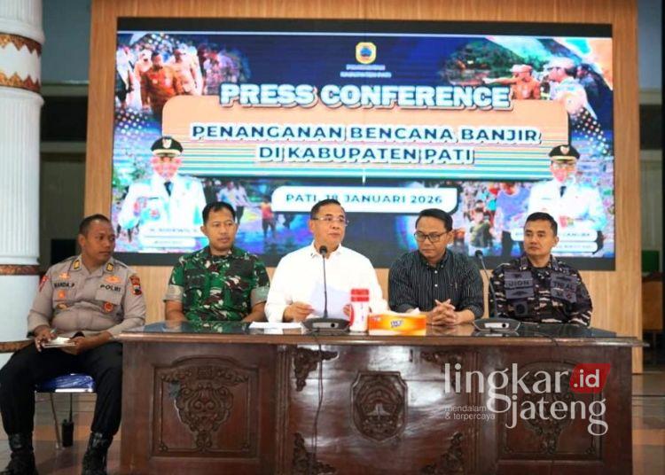 PATI, Lingkarjateng.id – Donasi Aparatur Sipil Negara (ASN) Pemerintahan Kabupaten (Pemkab) Pati untuk korban banjir Sumatera batal disalurkan. Hal ini disampaikan Bupati Pati Sudewo, saat konferensi pers penanganan bencana di pendopo kabupaten, Minggu, 18 Januari 2026.