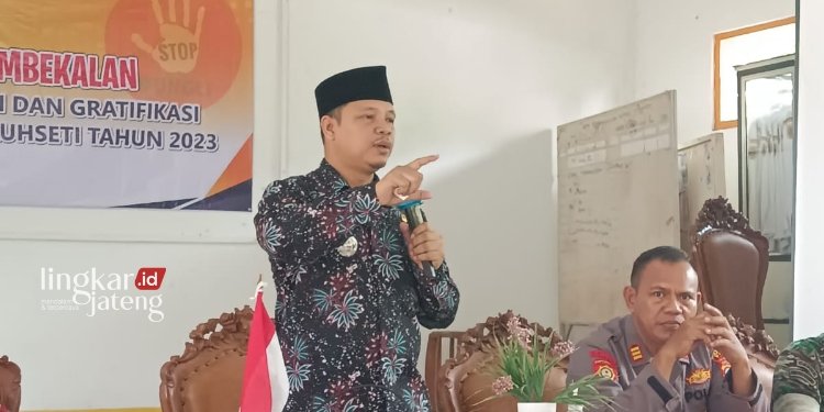 PATI, Lingkarjateng.id – Untuk mencegah terjadinya penyalahgunaan anggaran di pemerintahan desa, Pemerintah Kecamatan Dukuhseti, Kabupaten Pati menggelar “Sosialisasi dan Pembekalan Desa Bebas Korupsi, Pungli, dan Gratifikasi bagi Desa se-Kecamatan Dukuhseti tahun 2023” di Aula Kecamatan Dukuhseti, pada Jumat, 5 Mei 2023.