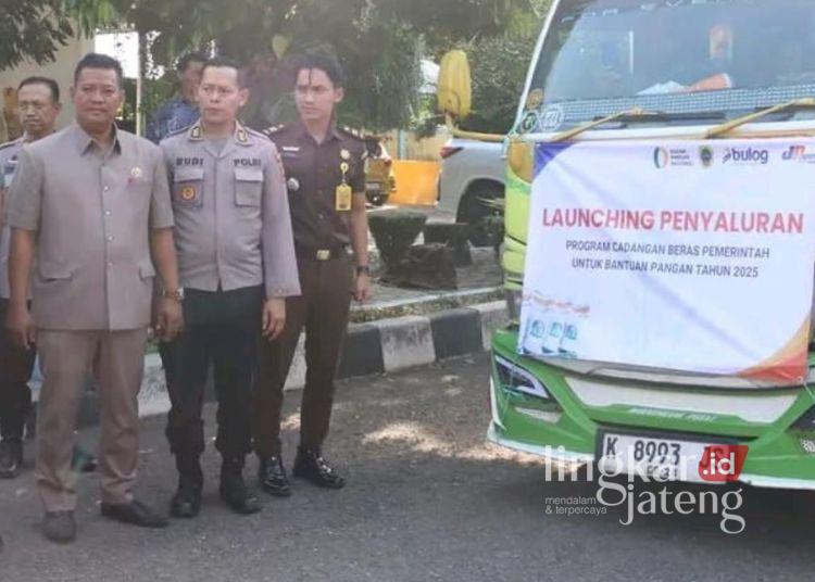 Anggota Komisi B DPRD Pati Sudi Rustanto (pertama kiri) mengikuti penyaluran bantuan cadangan pangan 2026. (Lingkarjateng.id)