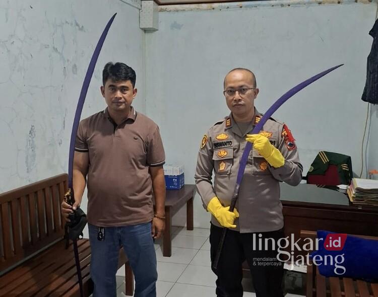 Polres Kudus saat mengamankan senjata tajam yang dibawa oleh dua remaja, Selasa (17/3). Foto: Nisa Hafizhotus Syarifa /Lingkar