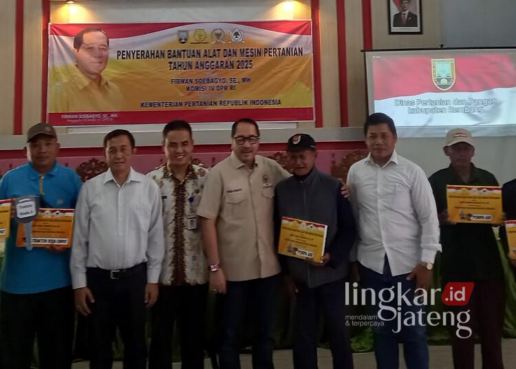 REMBANG, Lingkarjateng.id – Anggota Komisi IV DPR RI, Firman Soebagyo, menyerahkan bantuan alat dan mesin pertanian (alsintan) kepada kelompok tani di Kabupaten Rembang.