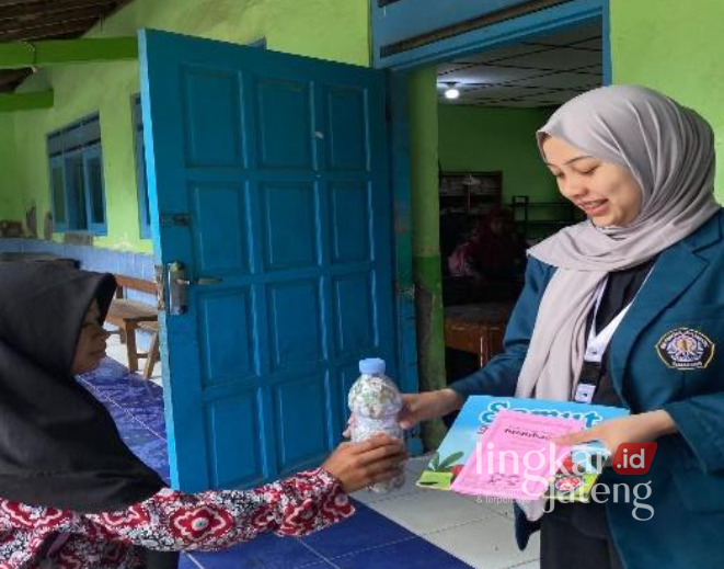 Mahasiswa Kuliah Kerja Nyata Tematik (KKN-T) Tim 36 Fakultas Teknik Program Studi Teknik Kimia Universitas Diponegoro menyerahkan produk E4 kepada warga di Desa Tangkisan, Kecamatan Bayan, Kabupaten Purworejo, Minggu, 18 Januari 2026. (Dok. Lingkarjateng.id)