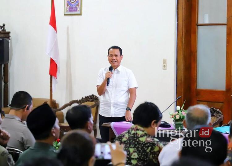 Gubernur Jawa Tengah, Ahmad Luthfi, saat memberikan arahan kepada jajaran Pemkab Pekalongan di Aula Sekretariat Daerah Kabupaten Pekalongan, Senin, 9 Maret 2026. (Humas Pemkab Pekalongan/Lingkarjateng.id)