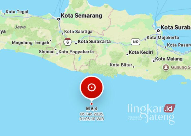MAGELANG, Lingkarjateng.id – Gempa bumi berkekuatan magnitudo 6,4 mengguncang wilayah tenggara Pacitan, Jawa Timur, Jumat dini hari, 6 Februari 2026 sekitar pukul 01.06 WIB. Guncangan terasa hingga sejumlah daerah di Jawa Tengah dan DIY, bahkan dilaporkan membangunkan warga yang sedang tidur di Kabupaten Magelang.