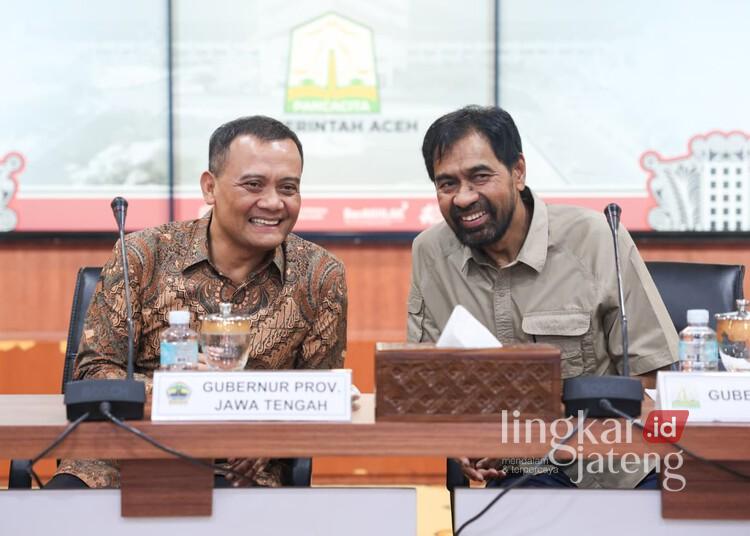 Gubernur Jawa Tengah Ahmad Luthfi dan Gubernur Aceh Muzakir Manaf dalam acara penandatanganan kerja sama ekonomi di Kantor Gubernur Aceh, Kamis, 23 April 2026. (Humas Pemprov Jateng/Lingkarjateng.id)