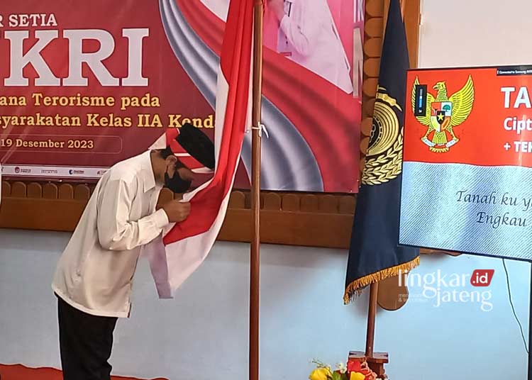 KENDAL, Lingkarjateng.id – Sebanyak tiga Narapidana Terorisme (napiter) pada Lembaga Pemasyarakatan Kelas (Lapas) II A Kendal mengucapkan Ikrar Setia terhadap Negara Kesatuan Republik Indonesia (NKRI) di Aula Lapas II A Kendal, pada Selasa, 19 Desember 2023.