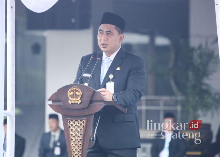 Wakil Gubernur Jawa Tengah Taj Yasin saat memimpin upacara peringatan Hari Bela Negara ke-77, di Halaman Kantor Gubernur Jateng, Jumat, 19 Desember 2025. (Humas Pemprov Jateng/Lingkarjateng.id)