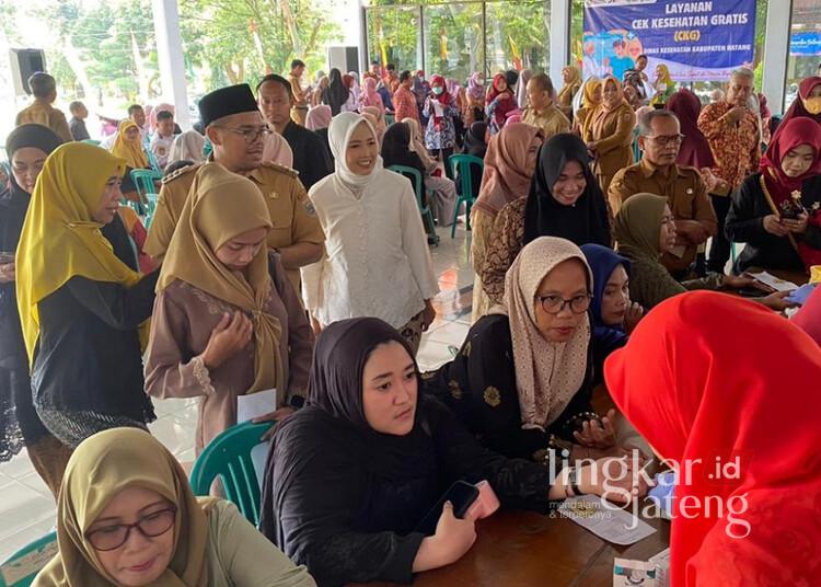 Bupati Batang, M. Faiz Kurniawan, meninjau pelaksanaan layanan cek kesehatan gratis dalam peringatan Hari Kartini di Pendopo Kabupaten Batang, Selasa, 21 April 2026. (Humas Pemkab Batang/Lingkarjateng.id)