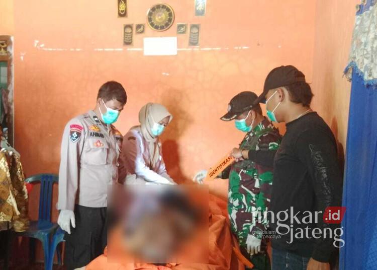 Petugas kepolisian dan medis menyerahkan jenazah lansia inisial S ke rumah duka di Dukuh Banat, Desa Bedingin, Kecamatan Todanan, Kabupaten Blora, Rabu, 1 April 2026. (Polres Blora/Lingkarjateng.id)