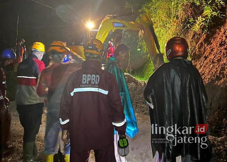 BPBD Batang bersama tim melakukan penanganan tanah longsor di sejumlah kecamatan wilayah Kabupaten Batang, Selasa malam, 20 Januari 2026. (Humas Pemkab Batang/Lingkarjateng.id)