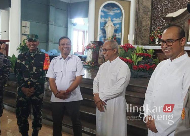 Wali Kota Pekalongan Achmad Afzan Arslan Djunaid (kedua kiri) bersama jajaran Forkopimda meninjau pengamanan Natal di Gereja Paroki Katolik Santo Petrus Pekalongan, Rabu, 24 Desember 2025. (Fahri Akbar/Lingkarjateng.id)