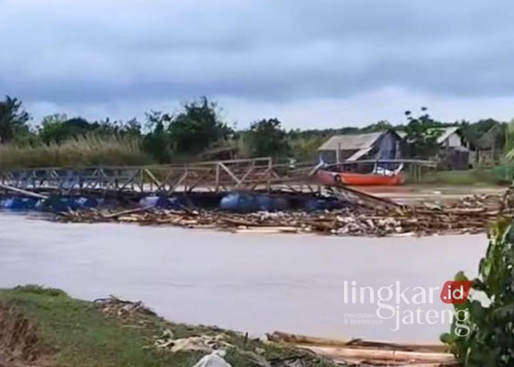 Ditanya kronologis terputusnya akses antarkecamatan itu, Sunarto mengungkap penyebab jembatan apung di Desa Gebangarum putus lantaran tertabrak jembatan lain yang sebelumnya juga terbawa arus.