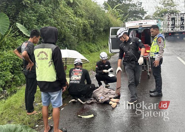 SALATIGA, Lingkarjateng.id – Kecelakaan kembali terjadi di jalan lingkar selatan (JLS) Salatiga tepatnya di simpang empat Pulutan, Kelurahan Pulutan, Kecamatan Sidorejo, Senin sore, 6 April 2026.