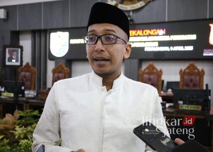 Ketua DPRD Kota Pekalongan, M. Azmi Basyir, saat memberikan keterangan usai membuka Rapat Paripurna HUT ke-119 Kota Pekalongan, Rabu, 9 April 2025. (Fahri Akbar/Lingkarjateng.id)