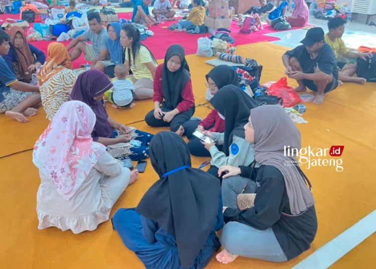 POSKO PENGUNGSIAN: Tampak kondisi di salah satu posko pengungsian di Kabupaten Kudus baru-baru ini. (Nisa Hafizhotus. S/Lingkarjateng.id)