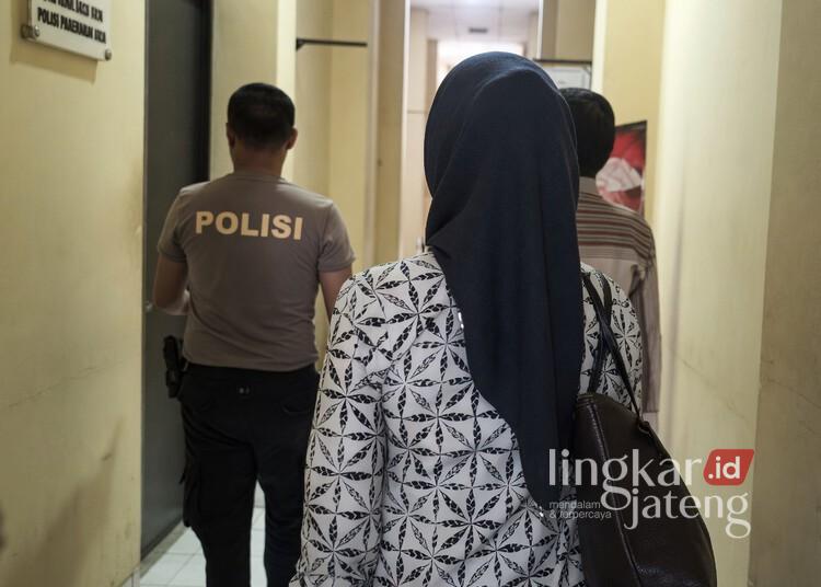 Kabag Perekonomian Setda Kabupaten Pekalongan, Siti Hanikatun, hendak memasuki ruang pemeriksaan KPK di Mapolresta Pekalongan, Jumat, 17 April 2026. (Fahri Akbar/Lingkarjateng.id)
