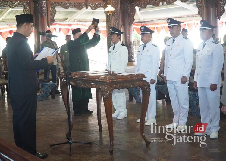 JEPARA, Lingkarjateng.id – Bupati Jepara, Witiarso Utomo, melantik empat petinggi hasil Pemilihan Kepala Desa Antarwaktu (PAW) di Pendopo R.A. Kartini, Kamis, 23 April 2026.