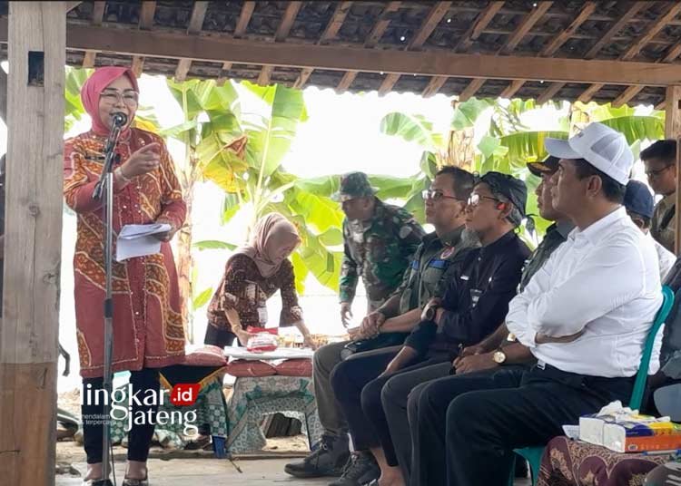 SAMPAIKAN ASPIRASI: Bupati Grobogan Sri Sumarni menyampaikan aspirasi kepada Menteri Pertanian (Mentan) Andi Amran Sulaiman saat kunjungan kerja di Grobogan pada Kamis, 21 Maret 2024. (Eko Wicaksono/Lingkarjateng.id)